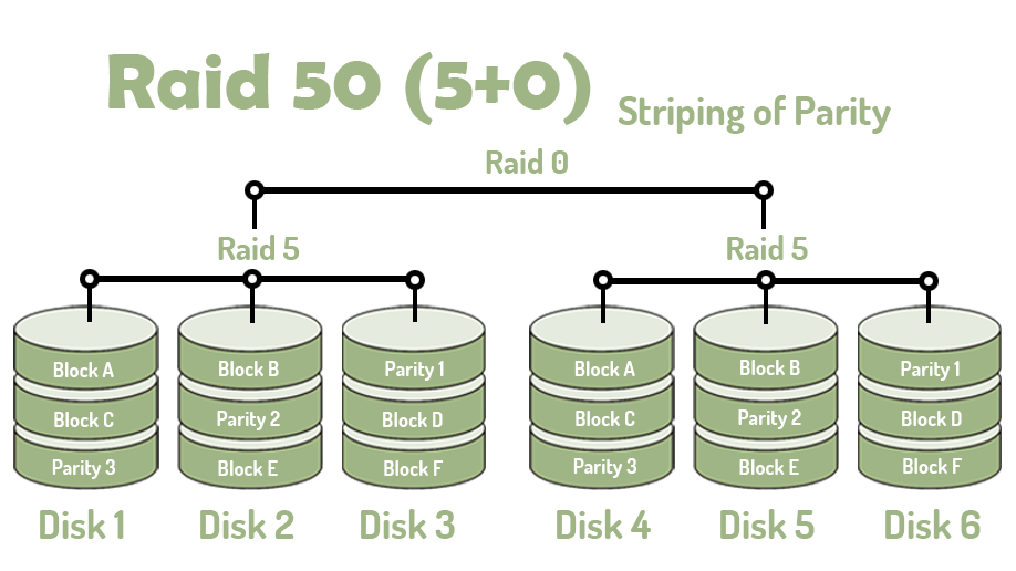 RAID 50 – (Striping of Parity)- سرعت بالا و تحمل خطای مناسب