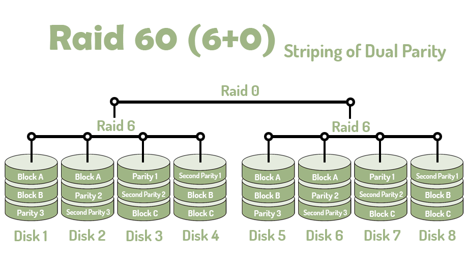 RAID 60 – (Striping of Dual Parity)- تحمل خطای زیاد برای مصارف خاص
