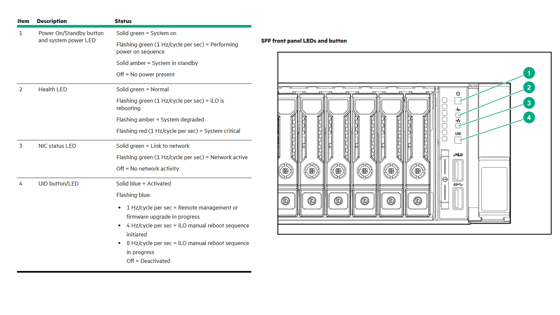 اگر به شکل سبز چشمک زن باشد، سرور در حال بررسی سخت افزار برای روشن شدن است. پس اگر پاور باتن سرور در حالت سبز چشمک زن باشد، باید منتظر باشیم که تا چند ثانیه ی دیگر، led ثابت شده و دستگاه روشن شود مگر اینکه برای سرورمشکلی بوجود آمده باشد، حالا اگر به رنگ کهرباییه ثابت باشد، به این معنیست که کابل برق به سرورپلاگ شده، اما در حالت خاموش است. و در آخر، اگر هم در کل LED مربوط به power button خاموش باشد، طبیعتا یعنی هیچ کابل برقی به سرور وصل نشده، درواقع برق درسیستم نیست،