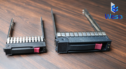 در واقع Caddy یا Carrier و یا Cage ها، یک براکتی هستند که هاردهای سرور داخل آن قرار گرفته و پیچ میشوند تا نصب هاردها روی سرور را ساده تر کرده و البته مهمترین وظیفه آن، Hot Plug یا Hot Swap کردن هارد می باشد. یعنی زمانی که ما نیاز به افزودن یک هارد درایو به سرورمان داشته باشیم، به واسطه وجود Caddy، به راحتی میتوانیم بدون دغدغه پیچ کردن یا فیکس کردن هارد ویا حتی باز کردن درب سرور، هارد مورد نظر را در جای مخصوص به خودش نصب کنیم، و یا اگر بعنوان مثال نیاز به خارج کردن یک هارد داشته باشیم، به راحتی و با فشردن یک دکمه، می توانیم هارد مورد نظر را خارج کنیم.